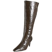 - Faux leather upper in a dress mid-calf boot style with a pointed toe